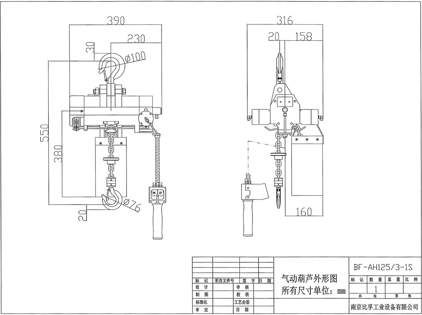 氣動葫蘆標準額定工作氣壓是0.4Mpa-0.7Mpa(56-100psi)