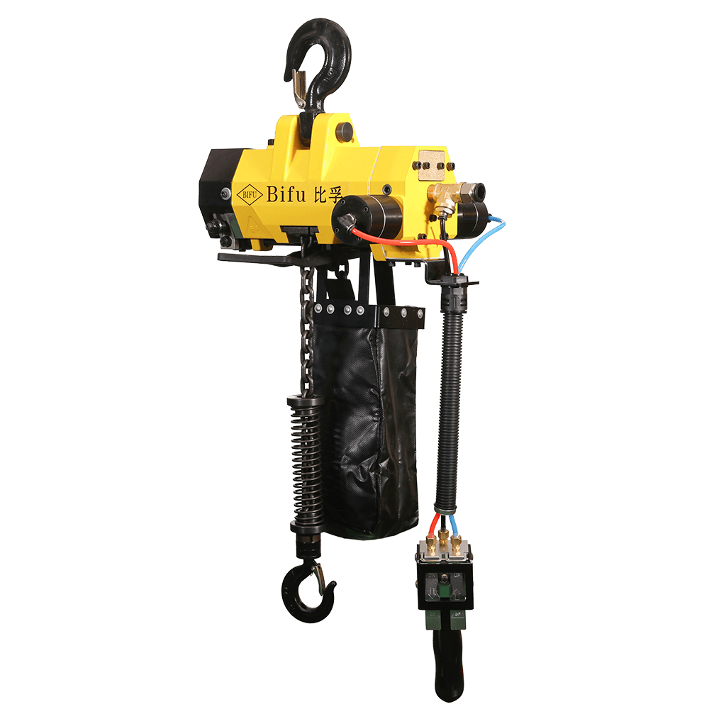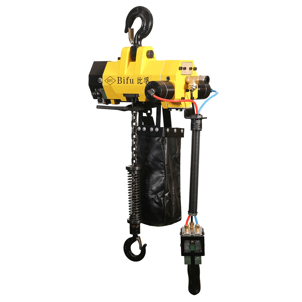 3、氣動葫蘆不會產生電擊危險,適合在化工廠、制藥廠和精煉廠等高度易燃的環境中使用。