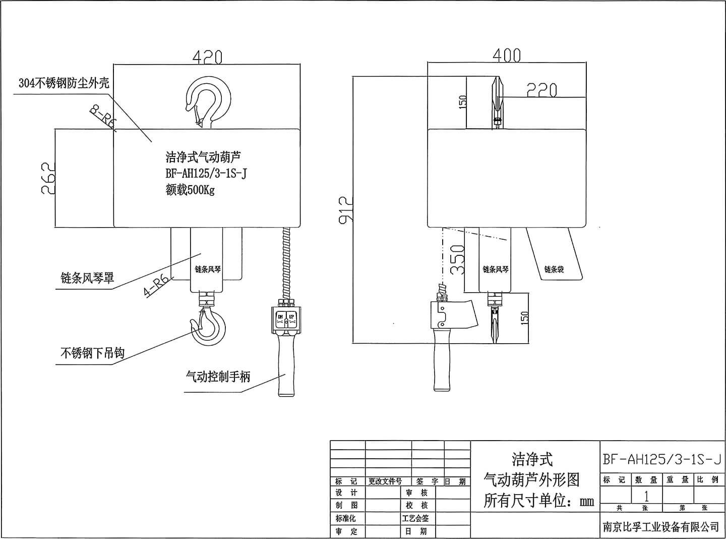 氣動(dòng)葫蘆型號(hào):BF-AH125/3-1S-J