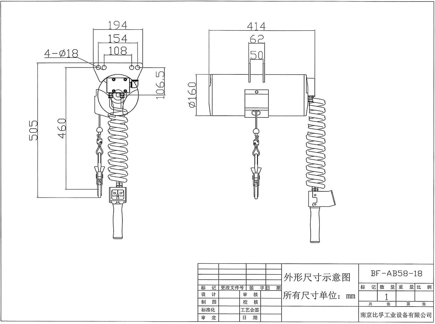 氣動平衡吊型號:BF-AB58-18