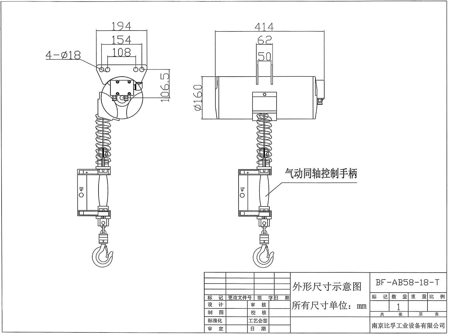 氣動平衡吊型號:BF-AB58-18-T