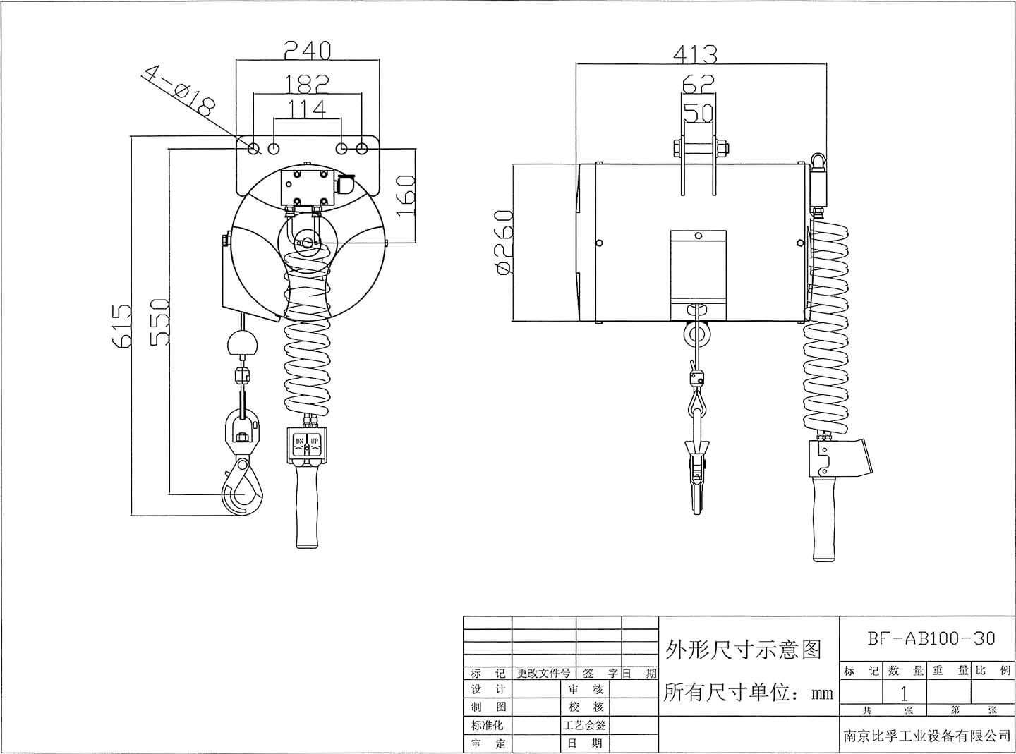 氣動平衡吊型號:BF-AB100-30