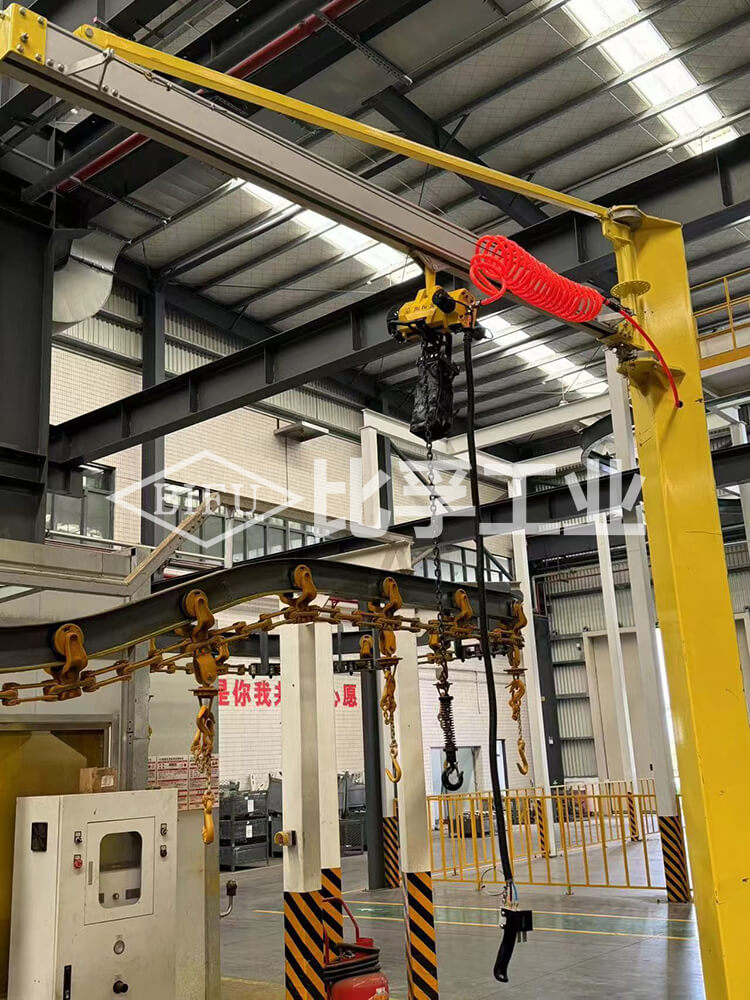 氣動(dòng)葫蘆配自立式懸臂吊上下料應(yīng)用案例。