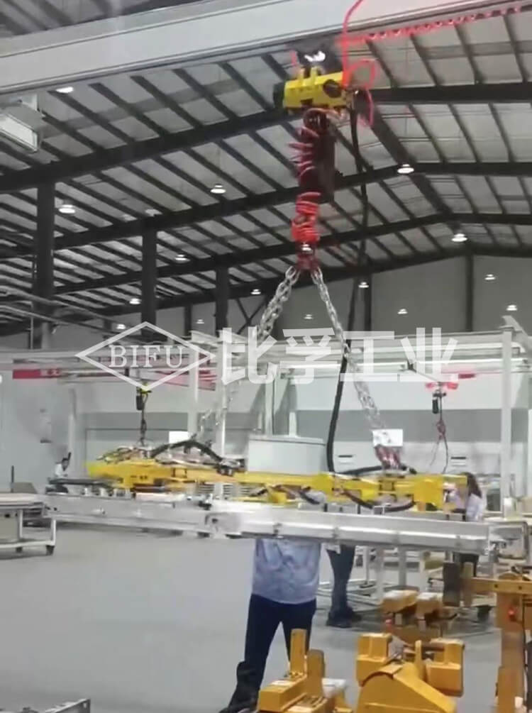 氣動葫蘆配鋁合金軌道上下料應用案例。