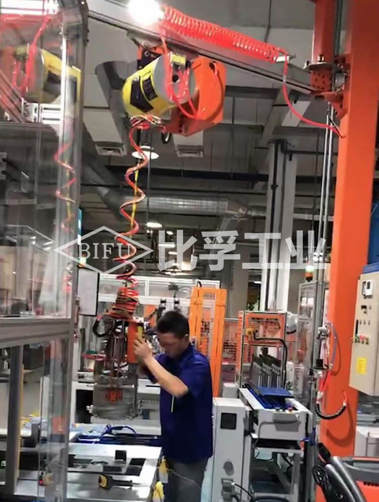 氣動平衡吊配自立式懸臂吊上下料應用案例。