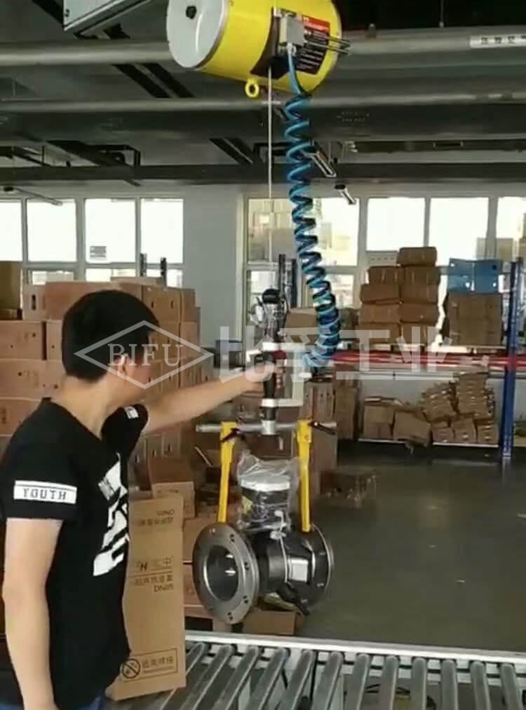 氣動同軸控制款氣動平衡吊配自立式懸臂吊上下料應用案例。
