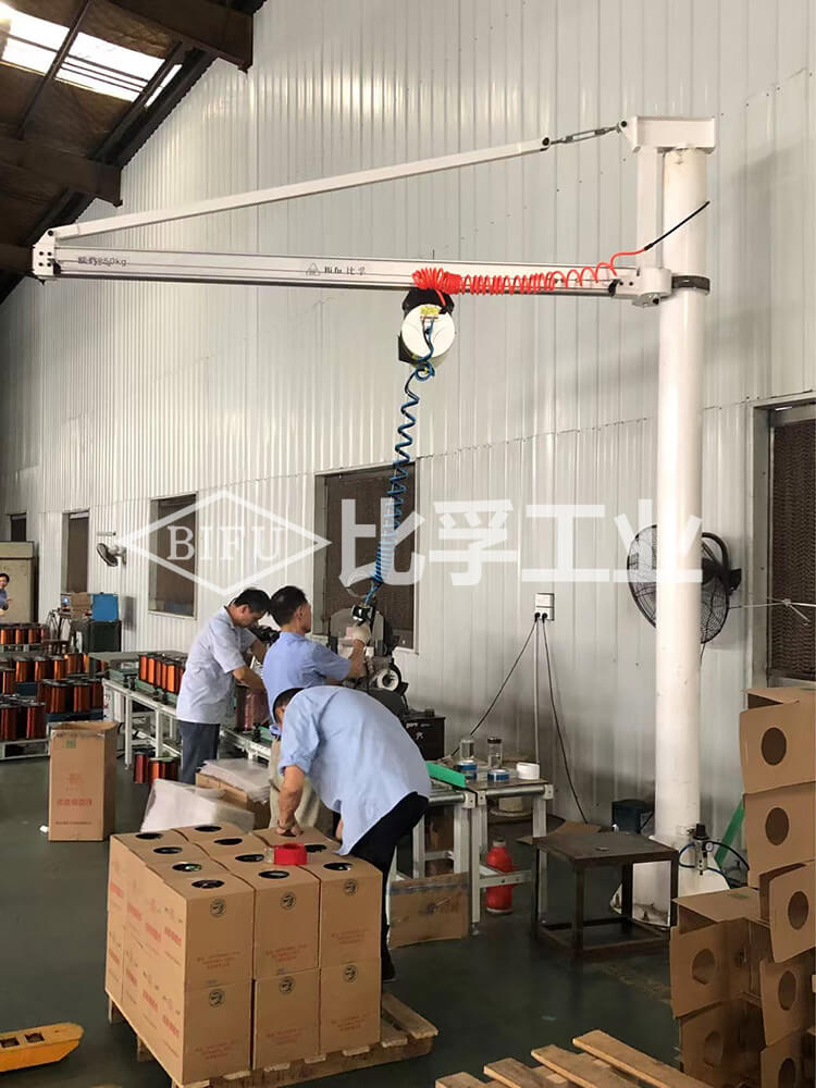 氣動平衡吊配自立式懸臂吊上下料應用案例。